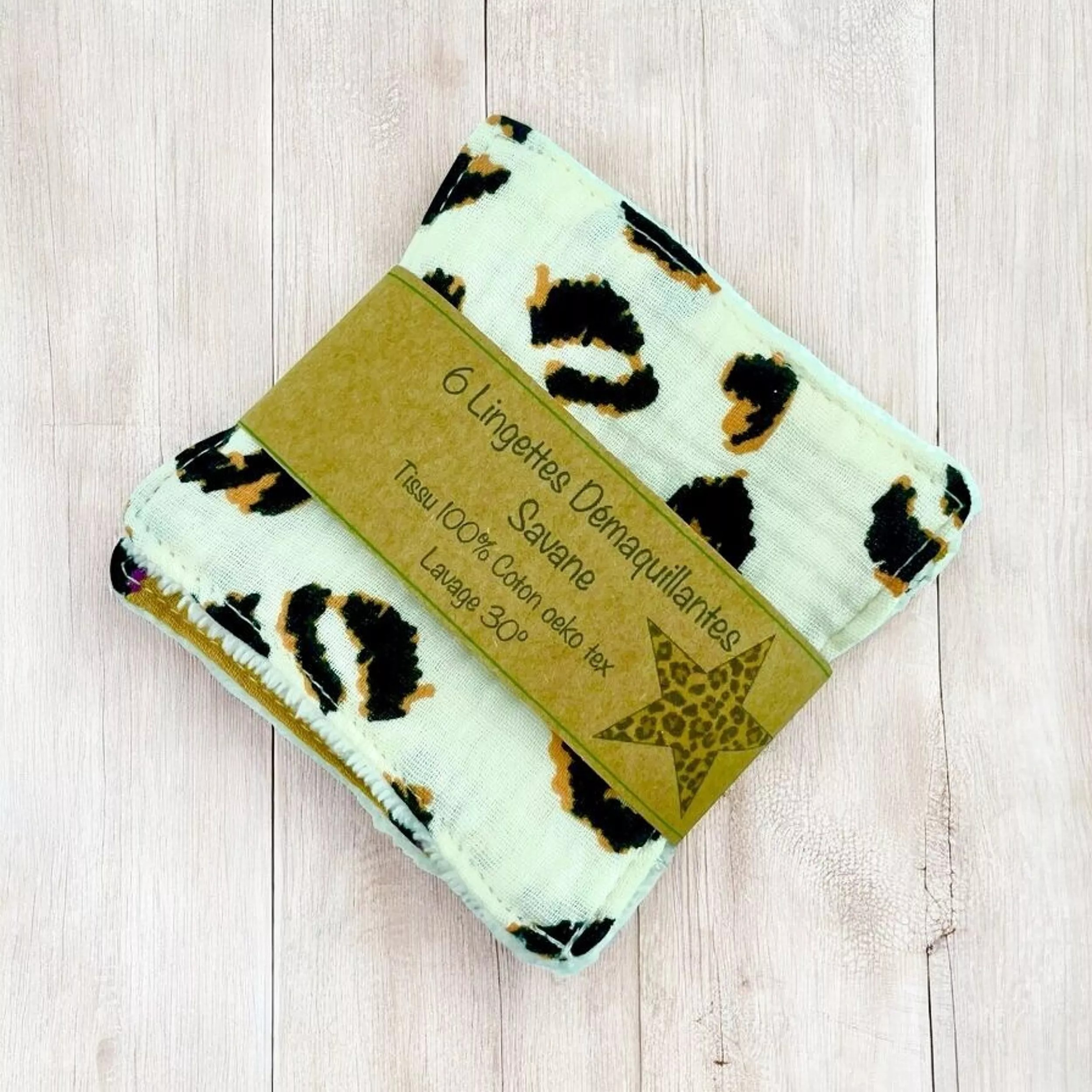 Craquez pour les lingettes lavables "Savane" et leur motif léopard ! Ce lot de 6 lingettes écologiques est idéal pour démaquiller ou nettoyer votre visage et vos yeux en douceur, tout en adoptant une routine zéro déchet.
