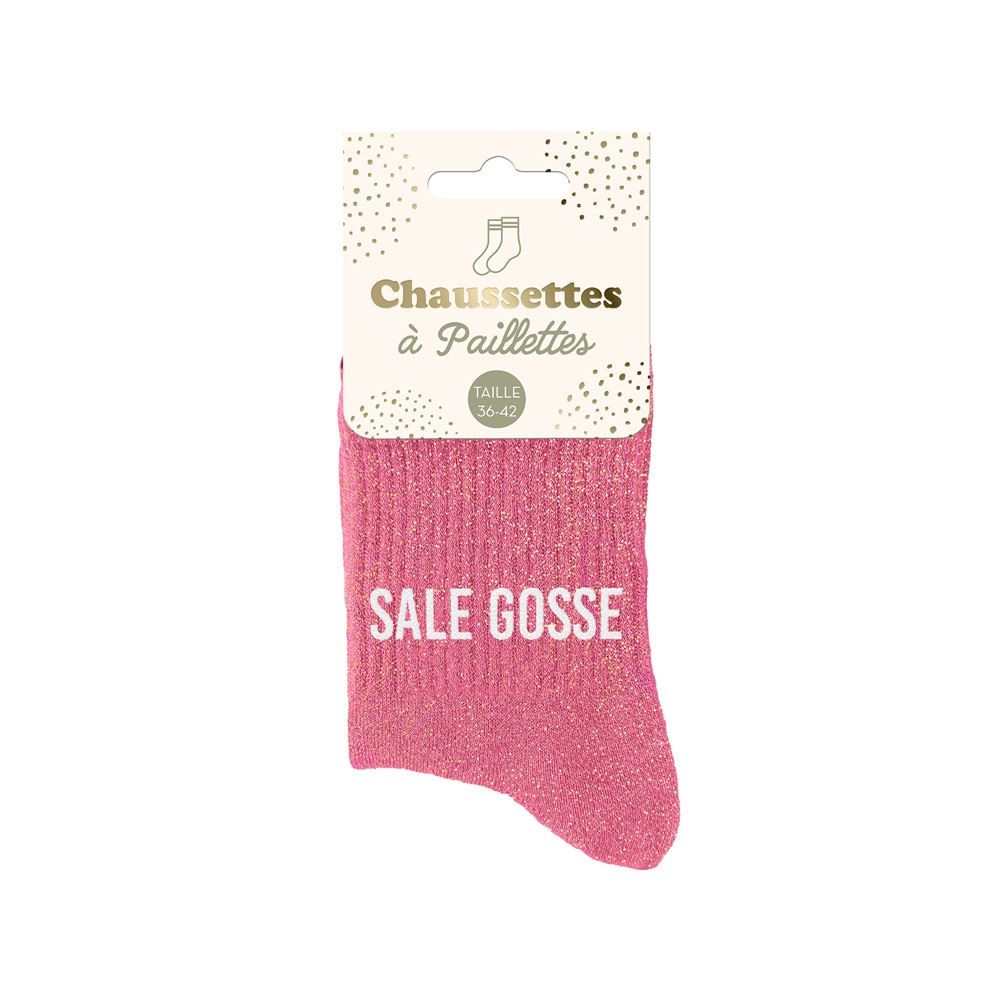 Avec leurs paillettes roses et la mention "Sale Gosse" en blanc, ces chaussettes allient douceur, confort et impertinence pour réchauffer vos pieds… et vos journées !