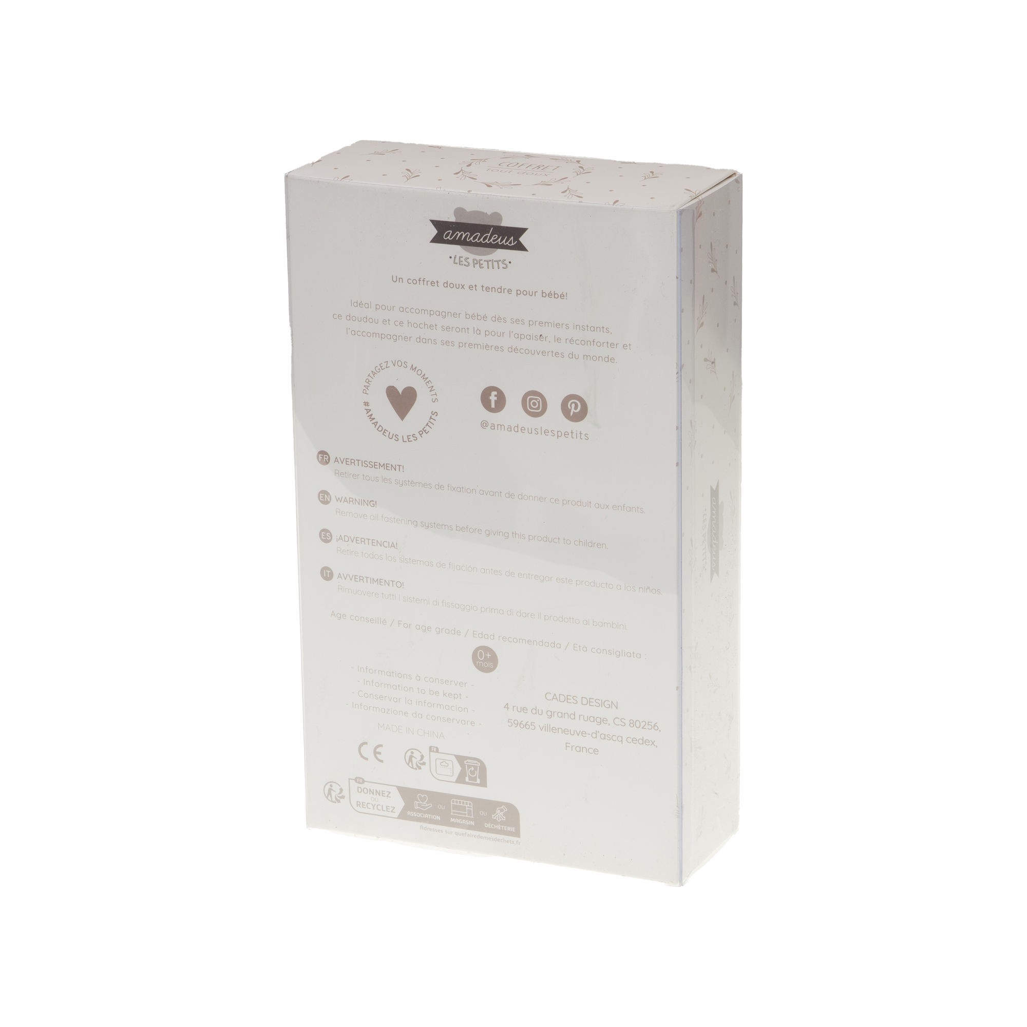 Offrez aux tout-petits ce coffret peluche et hochet en polyester, signé Amadeus Les Petits, une marque reconnue pour la qualité et la sécurité de ses articles bébé. Avec ses dimensions compactes (25 x 15 x 7 cm) et ses couleurs tendres (beige clair, rose pâle, marron clair), ce coffret est parfait pour éveiller les sens de bébé tout en douceur.