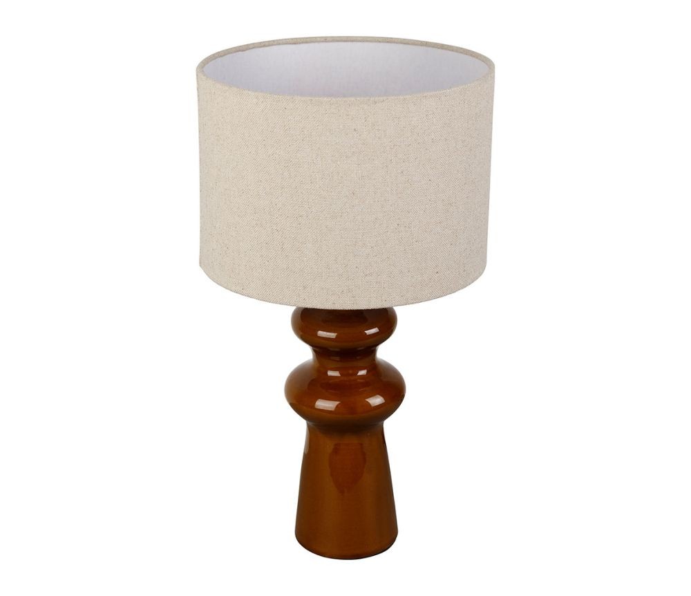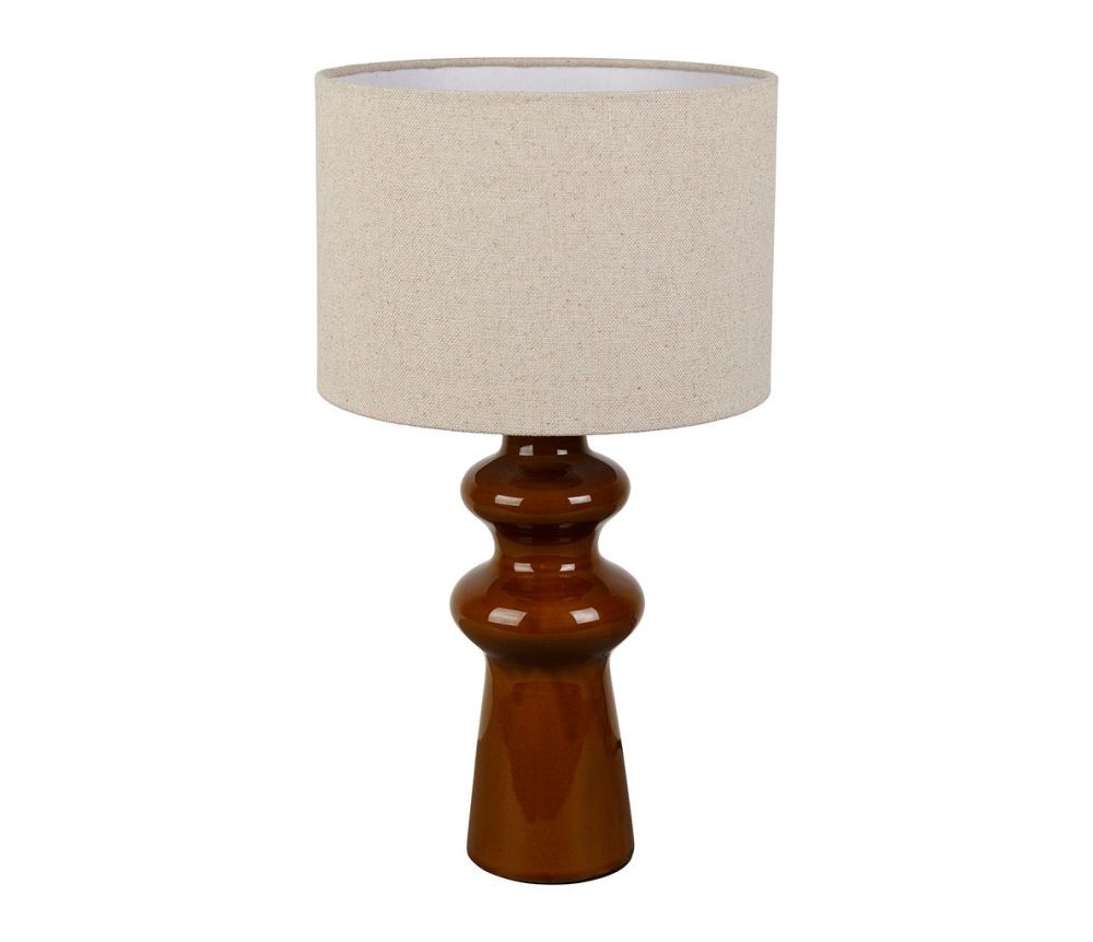 Découvrez cette lampe au design épuré, en céramique et lin brun, pour une ambiance à la fois moderne et chaleureuse.