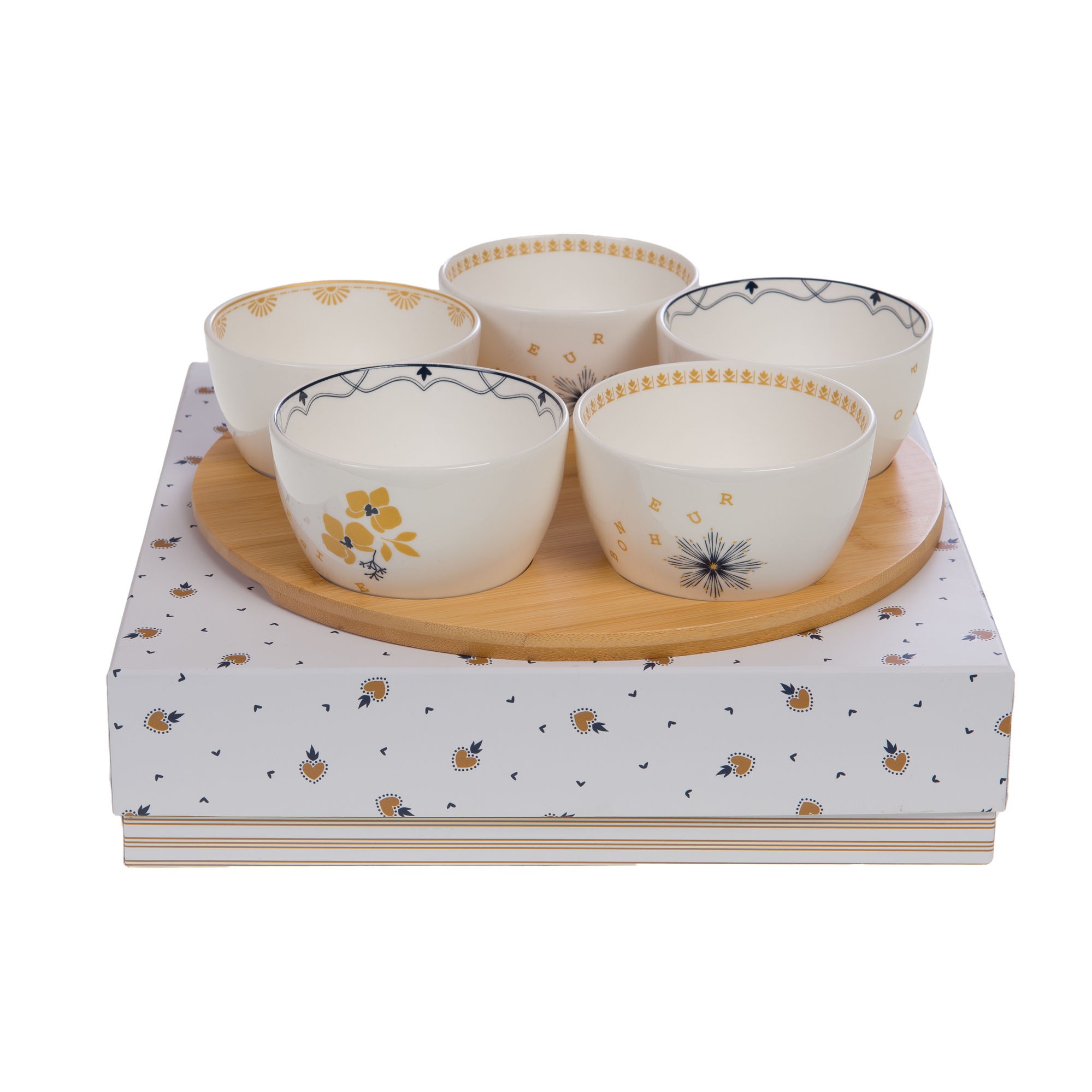Coffret "Poésie" – 5 Bols + Plateau en Bois – Élégance & Praticité en New Bone China