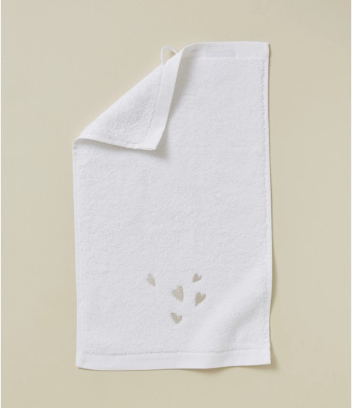 Serviette invité - Blanche- Brodée - Jolis cœur - 30x50 cm