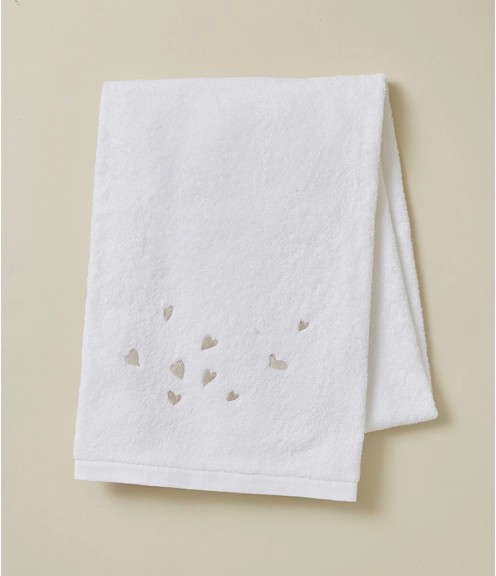 Drap de bain - Blanc - Brodé - Jolis cœur - 100x150 cm