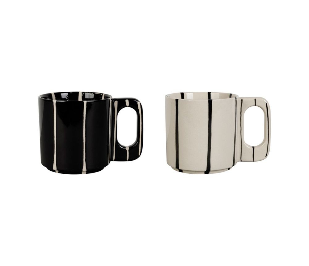 Lot de 2 tasses à thé EPURA – Grès écru & noir, élégance contrastée