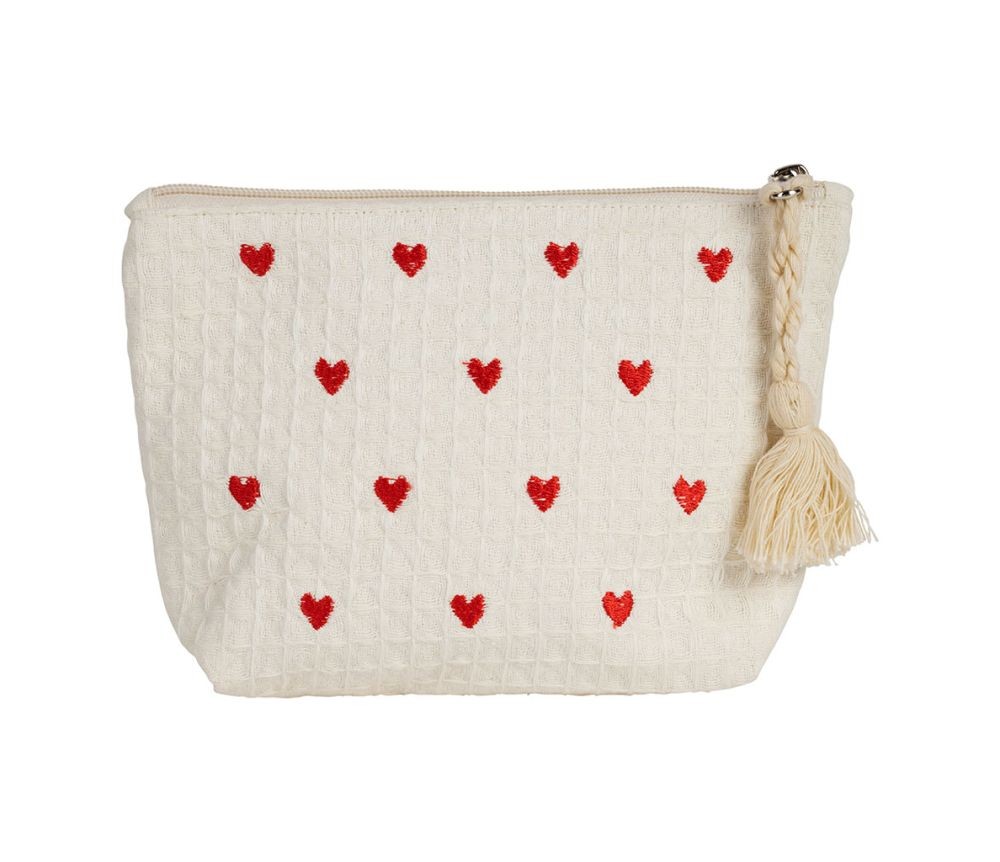 Pochette - Petit cœur - Blanc moucheté - Rouge - Grès - 20x5x15 cm