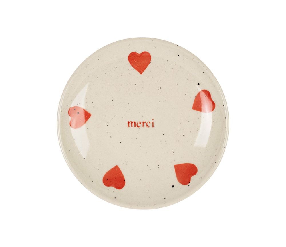Vide poche - Petit cœur - Blanc moucheté - Rouge - Grès